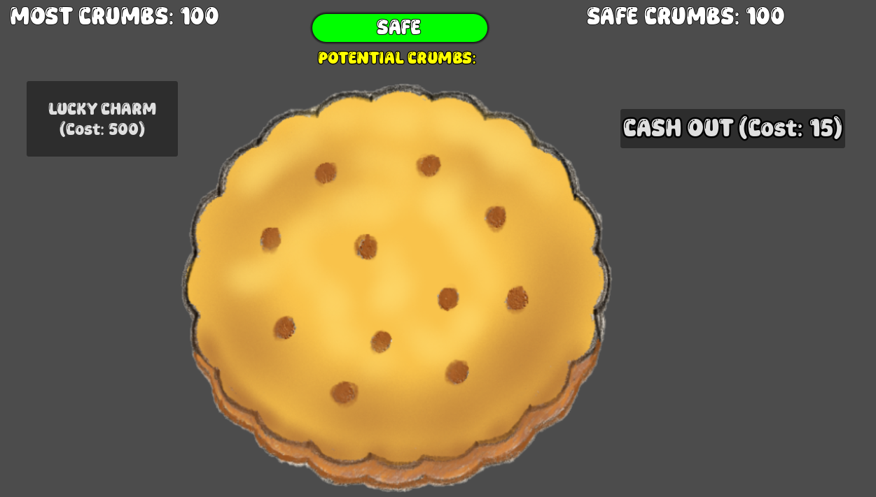 Clicker game where each bite gives you crumbs. Too many bites might break the biscuit and you lose your crumbs! So, be careful and get that cashout whenever you are in a surplus of crumbs!